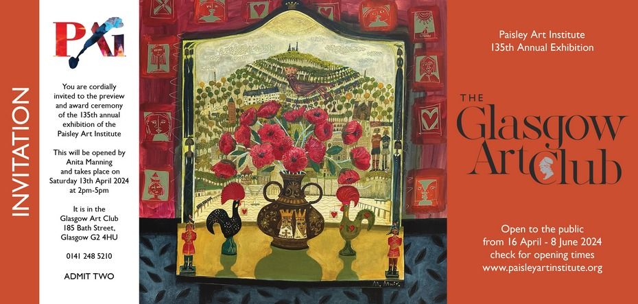The 135th Annual Exhibition was held in the historic Glasgow Art Club from 16th April to 8th June 2024. Many thanks to all our sponsors of prizes and to advertisers for their continued support.