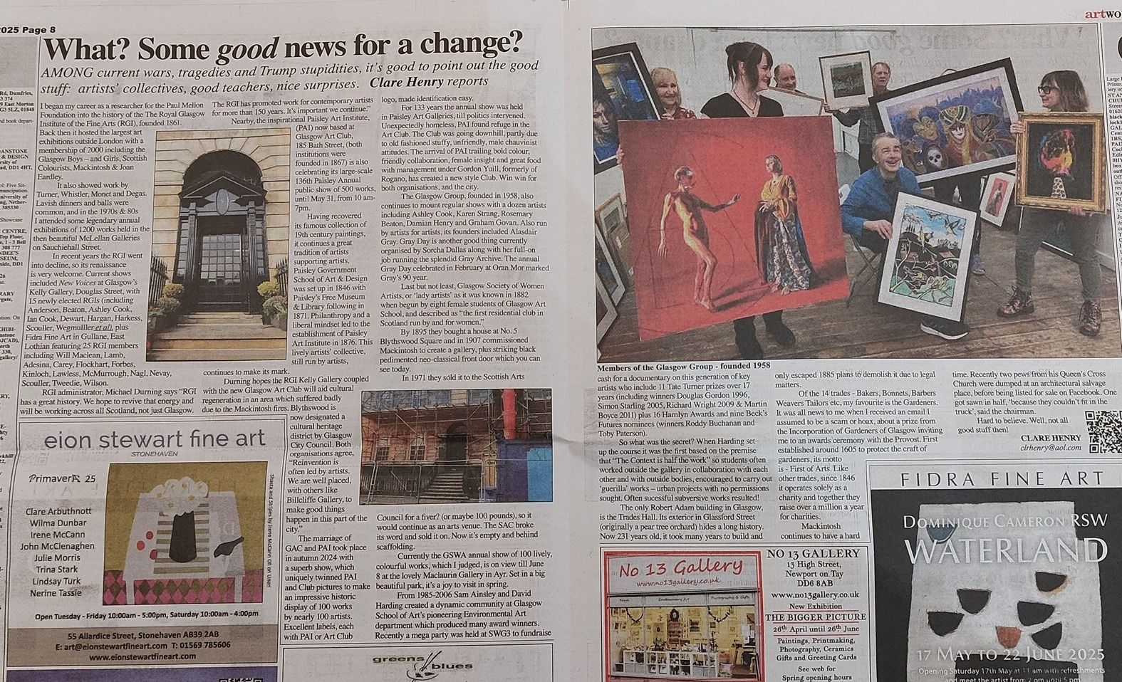 We are looking forward to next April. We will celebrate 150 years as The Art Institute of Paisley, since 1876 till 2026. In 2017, we were informed of a grand upturn we would enjoy. In 2018, we had a splendid exhibition, not realising if would be our last. We then noticed One Ren had gone quiet and by accident, some teachers, seeing round the Secret Collection, realised and had confirmed that the galleries were all to contain museum objects. There was no longer to be facility for temporary exhibitions!